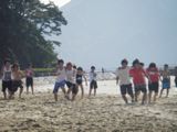 (砂浜でうつ伏せの 状態や二人三脚や海の中からなど、いろんな条件のもとで何人かでよーいドンでダッシュし、