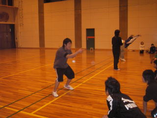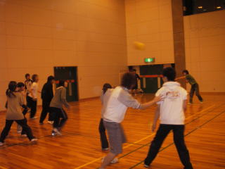 26日の夜はドッジボール対抗戦。27日の夜はバドミントン対抗戦。