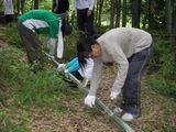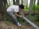 〈同行した魑魅魍魎チームは野菜収穫終了後、流しそうめん台作りの作業の手伝いで竹とり班と合流し作業開始〉 |