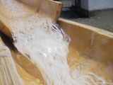 昨日苦労して作ったそうめん台に水が流れ始め、竹で作った器に