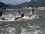 錦向井ヶ浜海水浴場があり、ビーチスポーツと海水浴を楽しみました。 〈もうここまでくると、午前中のイベントをふたつもこなしているだけに、みんなテンションが 上がりっぱなし・・・・もうー大変です〉