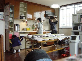食後は各自食器を片付け午後の授業に向けた準備をします。 |