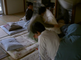 慣れない間は先輩の子供たちが起こしてくれます。 |